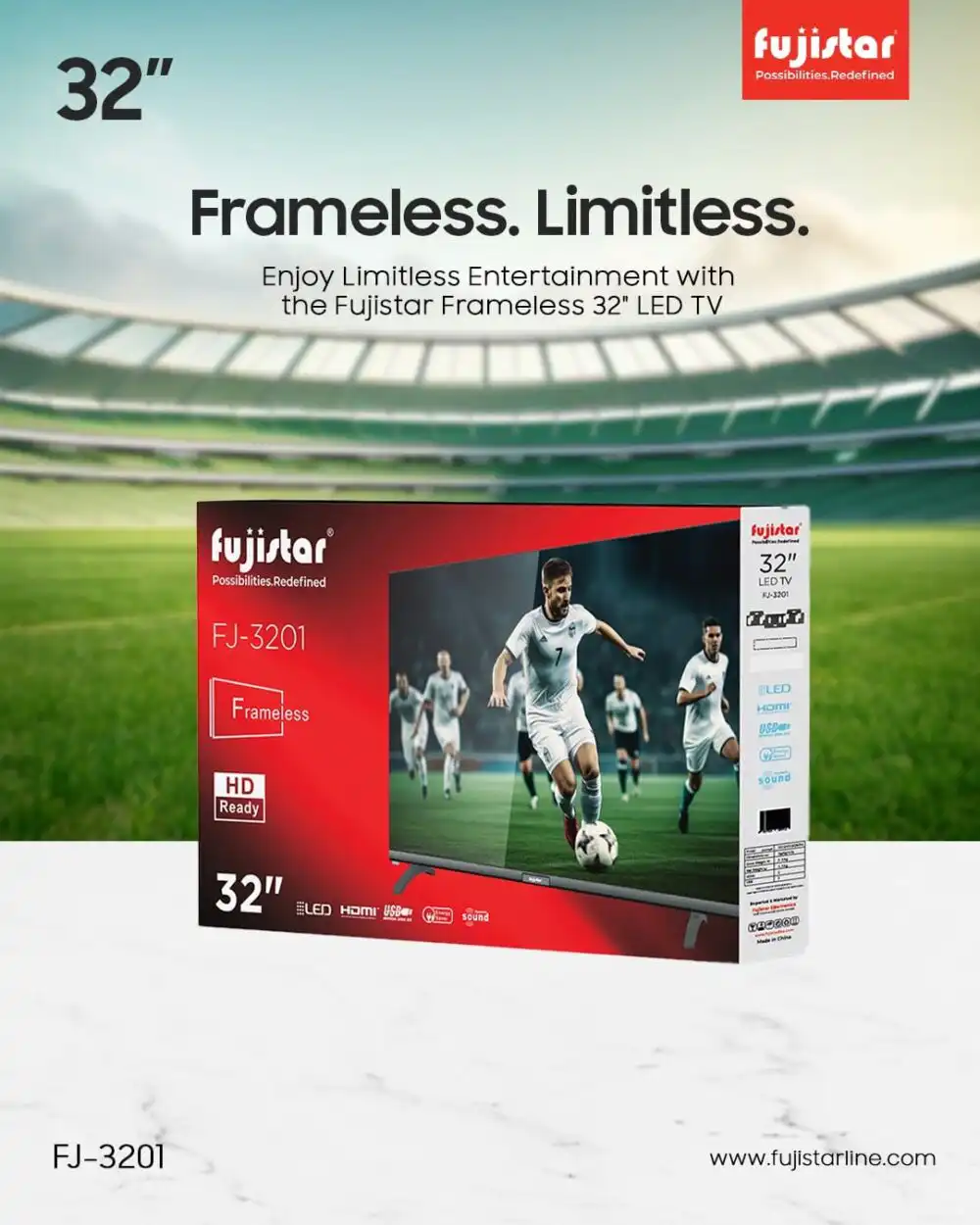 تصميم عصري، أداء مميز، وسعر يناسب الجميع! شاشة Fuji Star 32″ بدون حواف تجمع بين الأناقة والجودة العالية في عرض الصورة، وتوفر لك تجربة مشاهدة أوسع وأكثر انغماسًا. سواء كنت تتابع برامجك المفضلة أو توصلها برسيفر أو جهاز ألعاب، الشاشة بتعطيك وضوح ممتاز وسهولة في الاستخدام.