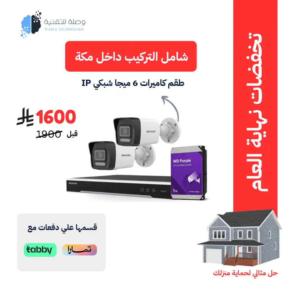 بكج مثالي للمنازل، المتاجر، أو المنشآت داخل مكة المكرمة، يشمل كاميرتين خارجيتين بدقة 6 ميجابيكسل من نوع IP (شبكي)، تقدم تصويرًا ملونًا على مدار الساعة وجودة فائقة التفاصيل حتى في ظروف الإضاءة المنخفضة.