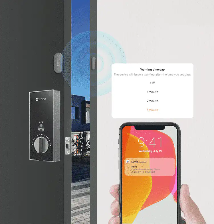 • فتح بدون مفتاح: يدعم بصمة الإصبع، الرقم السري، البطاقة الذكية، وتطبيق EZVIZ.